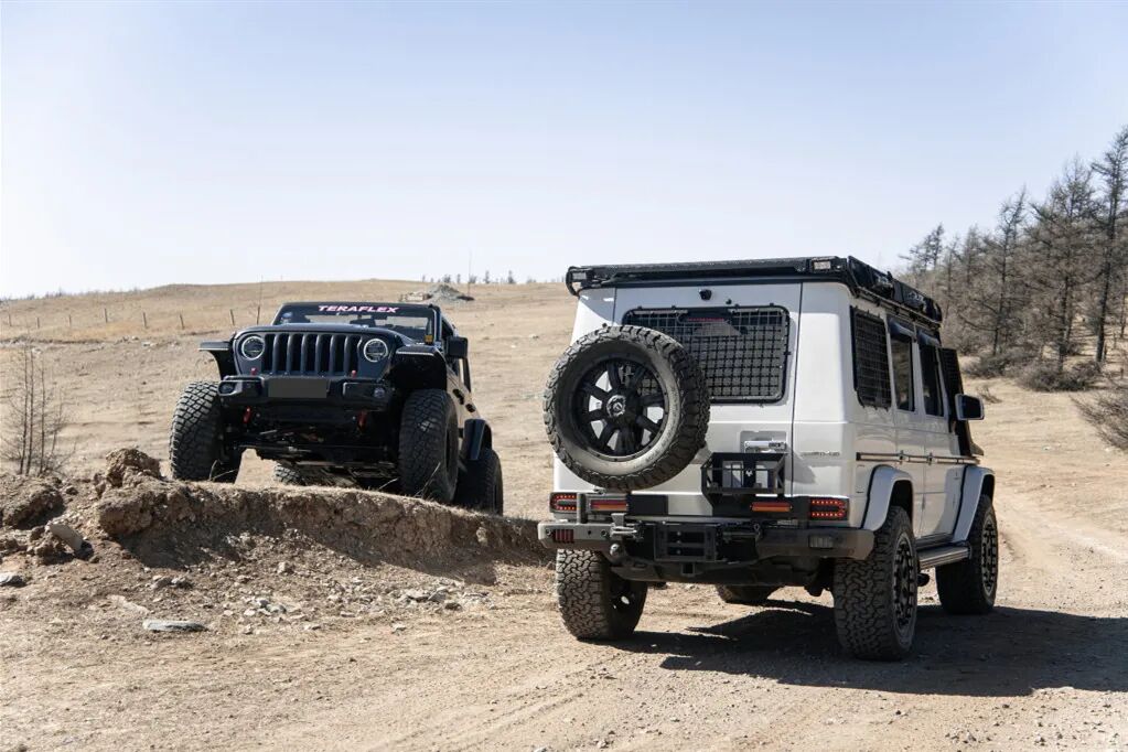 不论是赛车还是越野车,轮胎永远是除“三大件”之外最重要的环节。Hutchinson防脱胎轮毂,搭配以耐用性著称的百路驰KO2全地形轮胎,是这台G55在各种烂路以及根本不是路的地形上最大的保障。没用过AT胎的人根本不知道什么叫胎噪,也永远理解不了开车爬土坡到底有什么乐趣。搭配上新改装的Agshocks氮气避震和Agshocks弹簧,避震的长度和行程都有显著提升,穷人们再也没法诟病大G的通过性了。