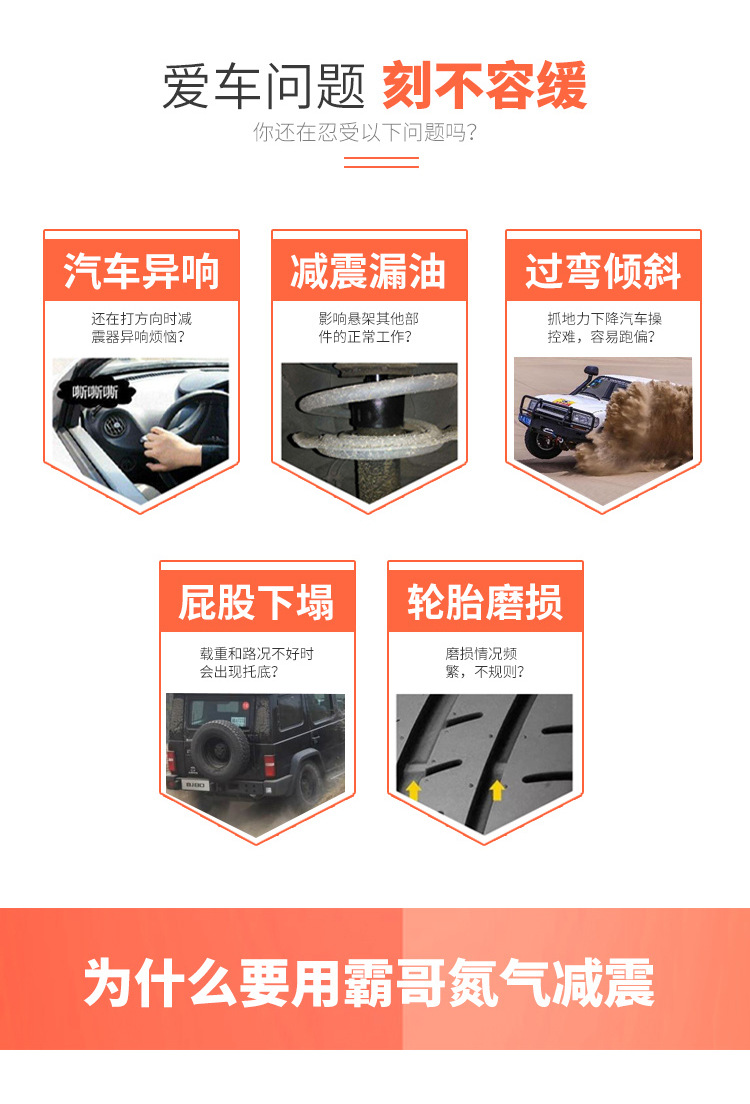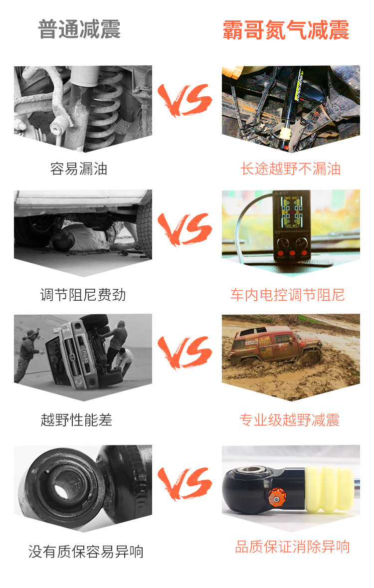 越野减振器:一年内因产品品质原因造成漏油,可享免费质保服务