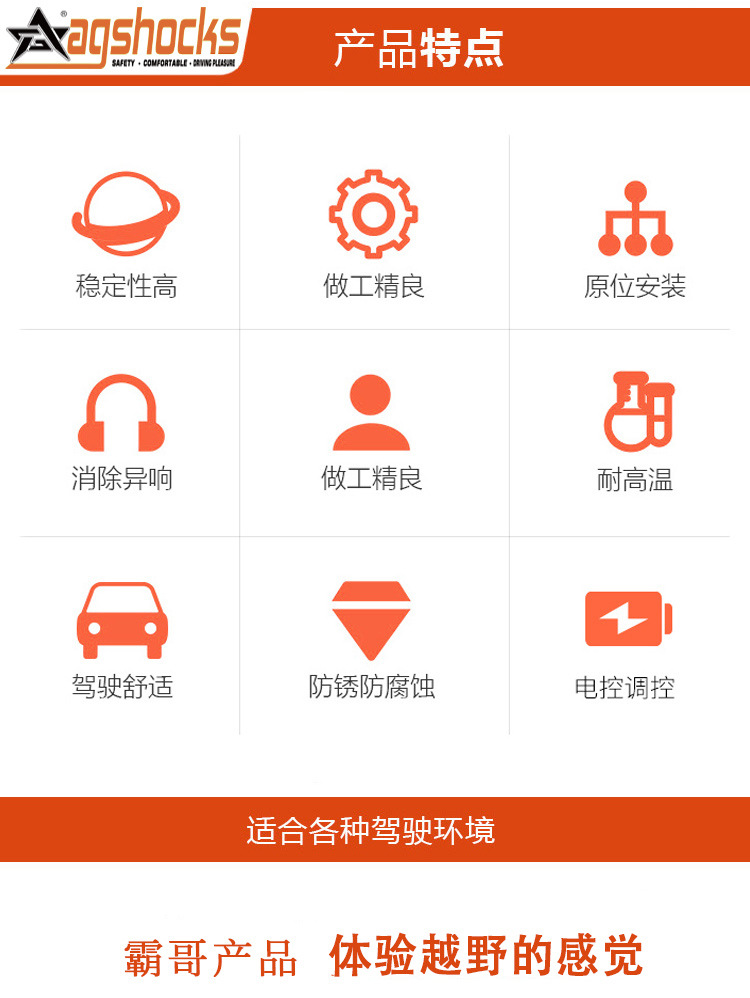 越野减振器:一年内因产品品质原因造成漏油,可享免费质保服务